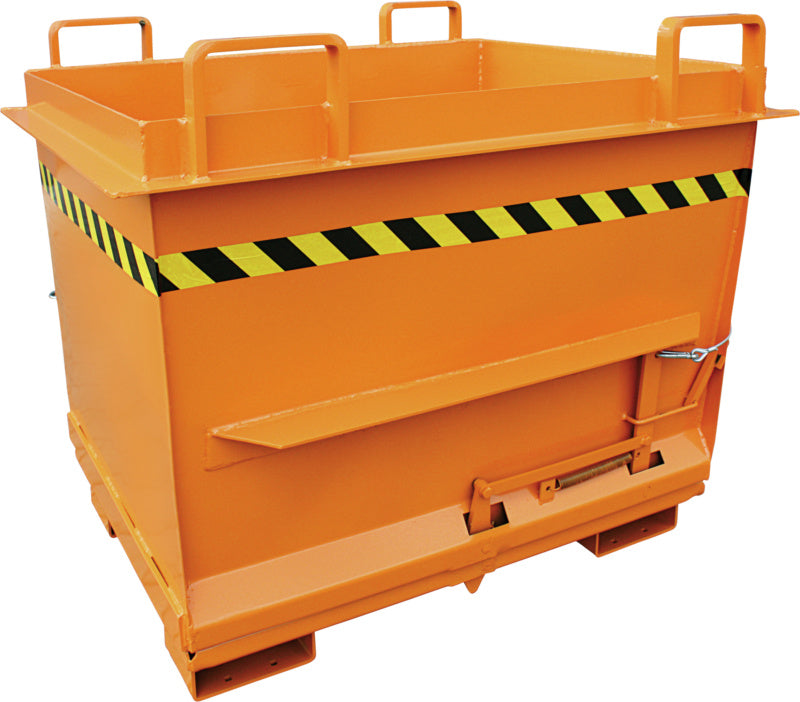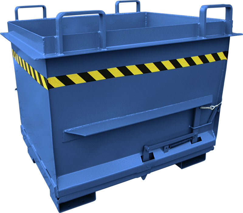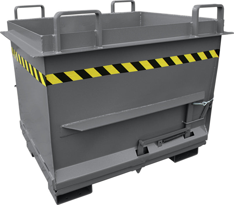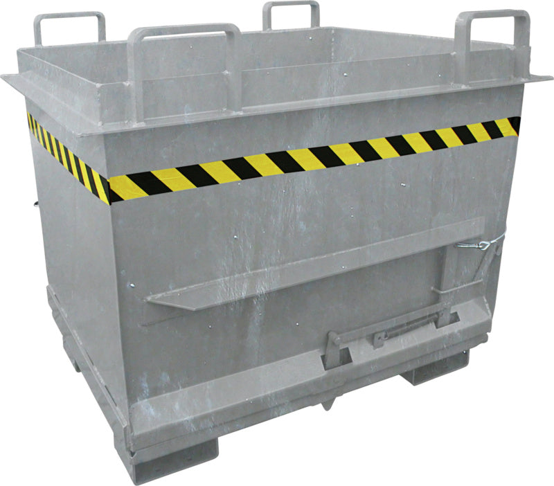 Stohovatelný kontejner s hladkými, mírně kónickými ocelovými stěnami a stohovacím lemem na všech stranách. Zajištěné pevné dno na pantech je možné otevřít pomocí tažného lanka a pružin ze sedadla řidiče. I když má kontejner kolečka, otevírá se na plných 90° a po položení na zem se automaticky zajistí. Pevně svařované nosné držáky umožňují použití s jeřábem nebo vysokozdvižným vozíkem. Řetěz jako protiskluzová ochrana.