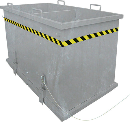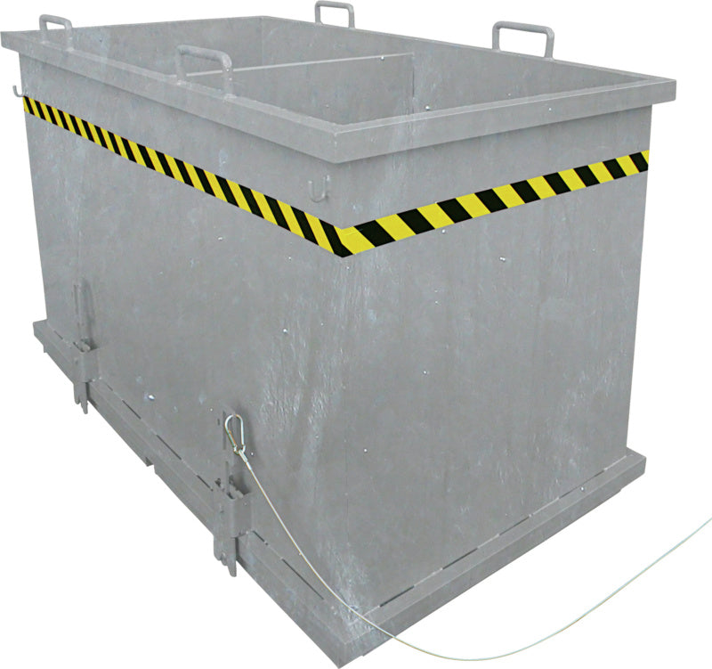 Vícedílný kontejner nabízí dvě nebo tři samostatné přihrádky, které lze otevírat pomocí samostatně ovládaných spodních výklopů. S robustními, zesílenými spodními výklopy s podpěrnými nohami pro světlou výšku 100 mm. Zesílený okraj a protiskluzová ochrana. Pro použití s jeřáby a vysokozdvižnými vozíky.