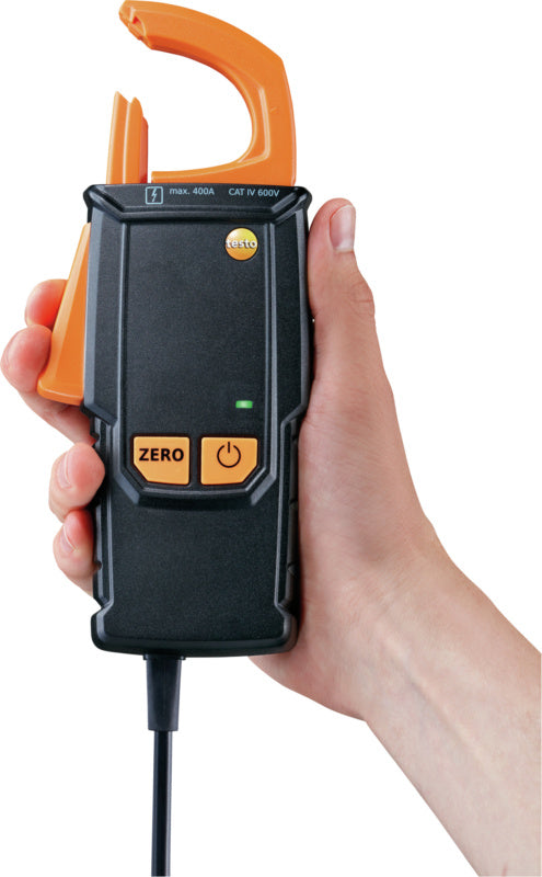 Adaptér proudových kleští pro bezkontaktní měření proudu umožňuje měření DC/AC až do 400 A AC/DC. Adaptér proudových kleští můžete připojit k vhodnému digitálnímu multimetru od společnosti Testo nebo k digitálním multimetrům jiných značek s rozlišením v rozsahu mV. Pohyblivé upínací rameno lze zcela zasunout, což umožňuje např. uchopit pevně balené kabely ve skříňkách rozvaděčů jako s hákem.