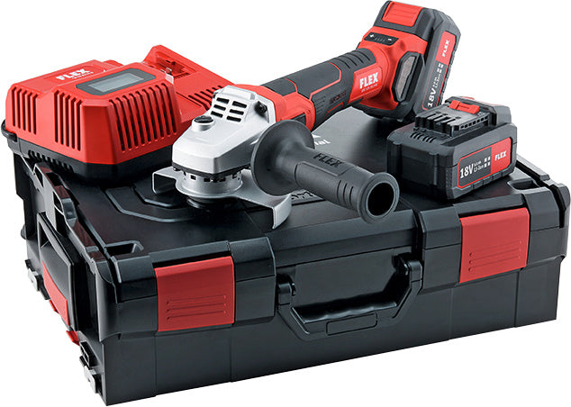 2x akumulátor 18 V/5 Ah, nabíječka 10,8/18,0 v kufru L-BOXX, včetně ochranného krytu, rukojeti, klíče, upínací příruby a upínací matice