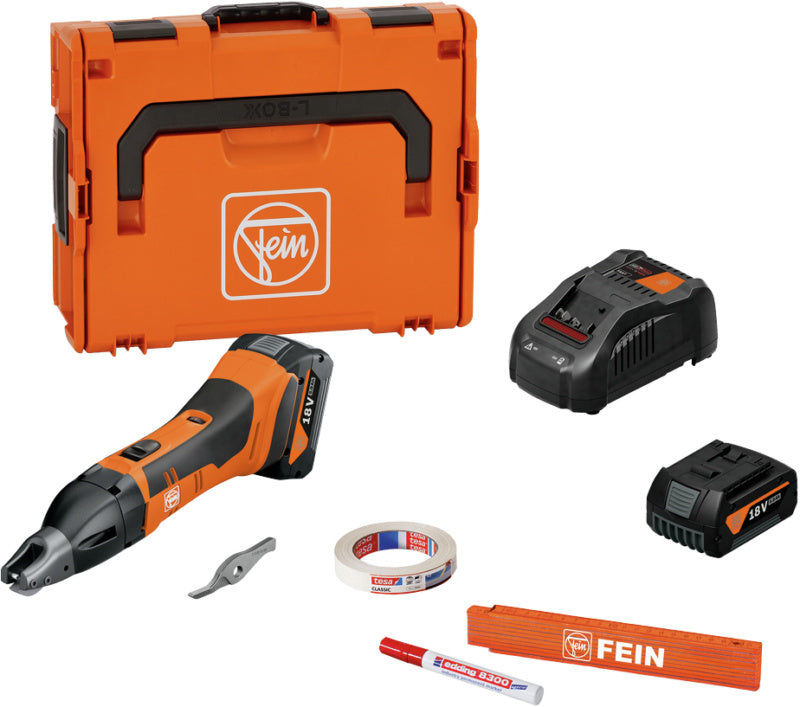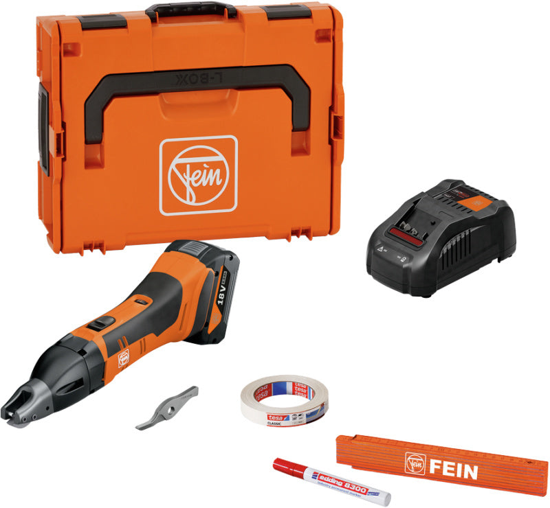 Řezný výkon 180 m (v plechu 0,8 mm) s jedním nabitím akumulátoru (GBA 5 Ah).