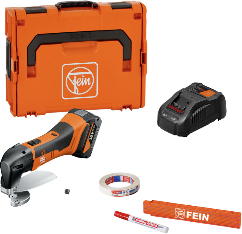 Řezný výkon 221 m (v plechu 0,8 mm) s jedním nabitím akumulátoru (GBA 5 Ah).
