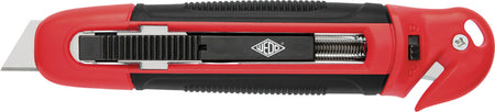 Pružinová lichoběžníková čepel se po přeříznutí automaticky zasune, pokud při řezání nedržíte jezdec.