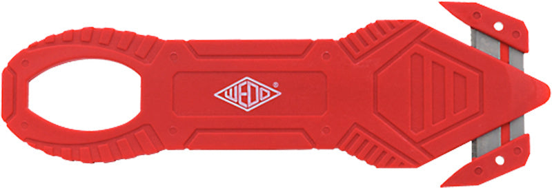 Plastový štěrbinový řezač na horním krytu ostří, pro proříznutí lepicí pásky na obalu atd.