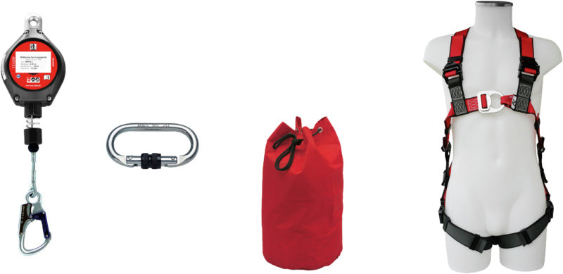 Bezpečnostní sada obsahující bezpečnostní postroj MAS 40 Quick, bezpečnostní úvaz ACB (délka 1,8 m), karabiny BS 20 a vak na zařízení