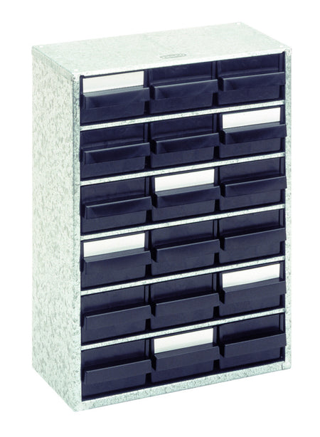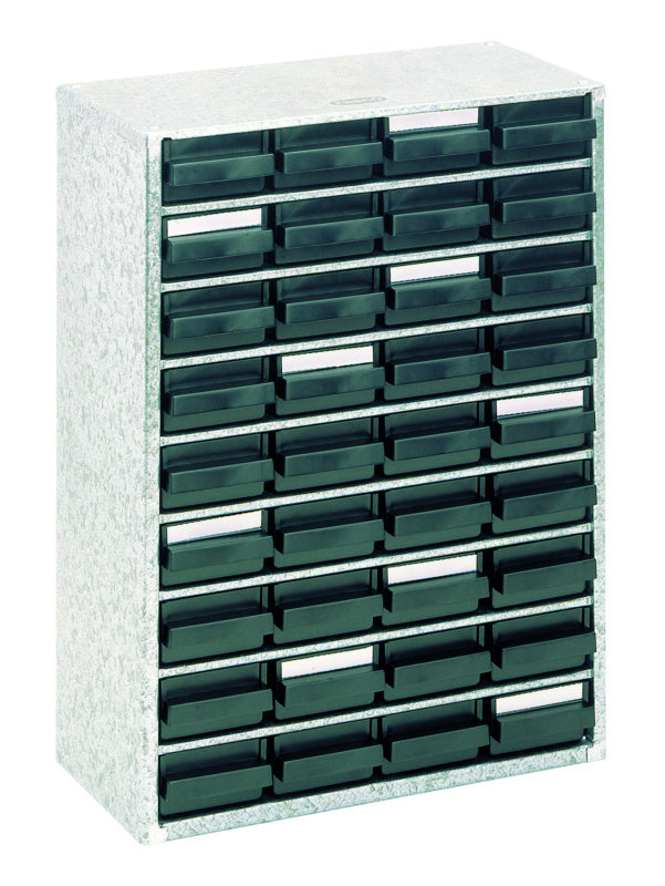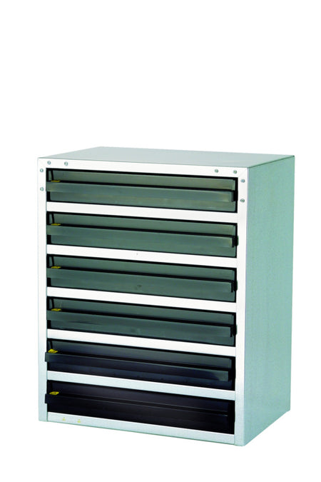 Přehledné a bezprašné skladování malých dílů. Bloky zásuvek jsou vhodné pro montáž na stěnu (vč. montážních dílů) na pracovišti (vč. gumových nožek) nebo pro prostorově úspornou instalaci na otočné věži.