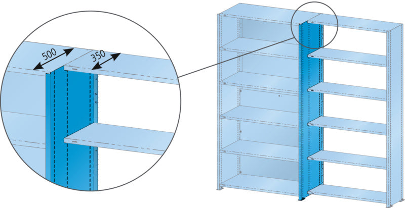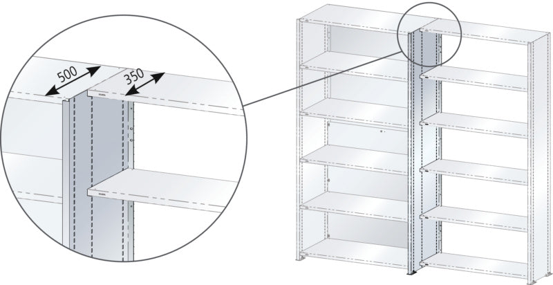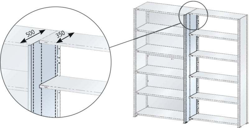 Koncové panely: Boční kryty pro řady polic. Pro montáž do sloupových rámů s použitím podpěr polic. Včetně podpěr polic. Provedení: Ocelový plech.