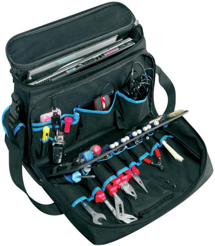 Nářaďový kufr na notebook pro techniky s vyjímatelnými vanami na nářadí