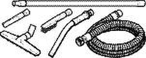 1 sací hadice (průměr 36 mm x 4 m), nástavec (rovný), ruční hubice (zahnutá), hubice na velké plochy, kloubová a kartáčová hubice