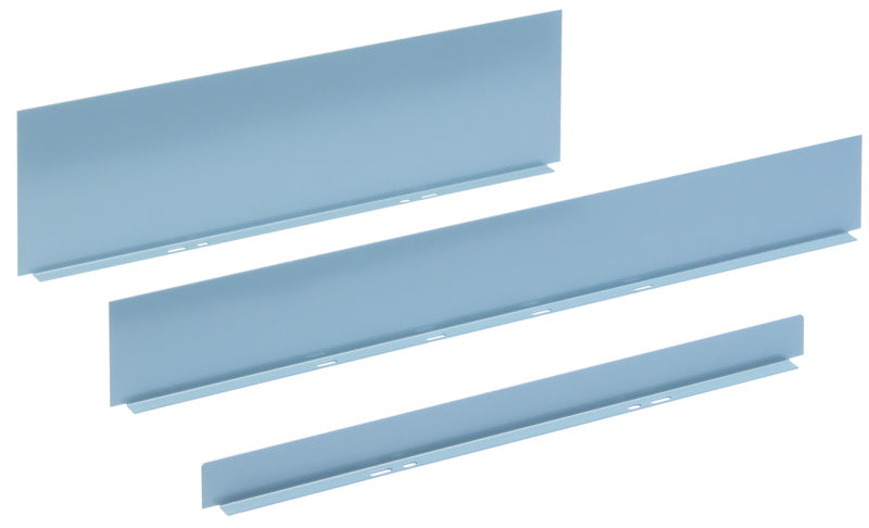 Přepážky: Pro rozdělení drážkovaných univerzálních a nastavitelných polic. Provedení: Ocelový plech. Barva: Světle šedá RAL 7035.