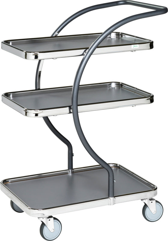 Designový servírovací vozík se třemi ložnými plochami z kovu/MDF, řada C