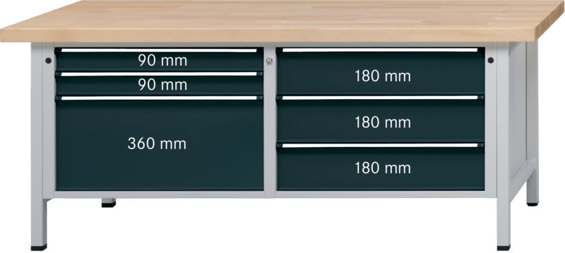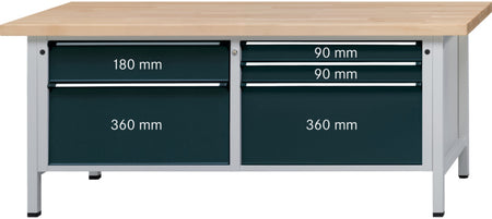 Dílenský stůl, řada VX 2000, se zásuvkami XL