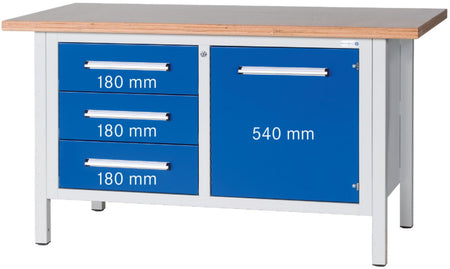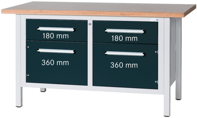 Bukový multiplex 1500 mm, 2 zásuvky s částečným vysunutím, 2 dveře