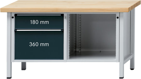Obložení zinkovým plechem 1500 mm, 2 zásuvky s plným vysunutím, 1 otevřená přihrádka