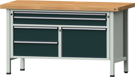 Bukový masiv 1500 mm, 2 zásuvky s plným vysunutím, 1 dveře