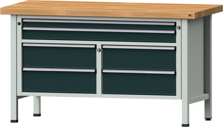 Bukový masiv 1500 mm, 5 zásuvek s plným vysunutím