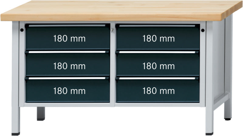 Bukový masiv 1500 mm, 6 zásuvek s plným vysunutím