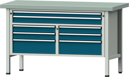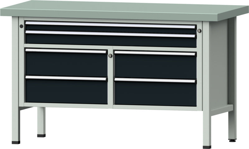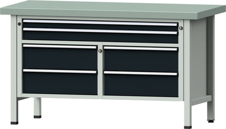 Obložení zinkovým plechem 1500 mm, 3 zásuvky s plným vysunutím, 1 otevřená přihrádka