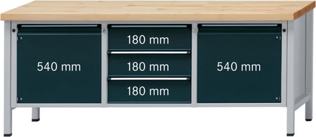 Bukový masiv 2000 mm, 9 zásuvky s plným vysunutím