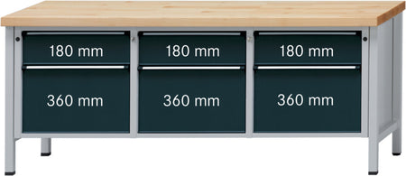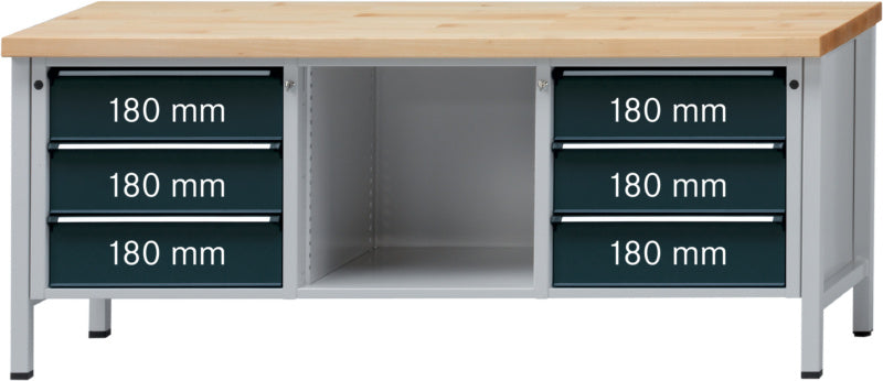 Bukový masiv 2000 mm, 6 zásuvek s plným vysunutím