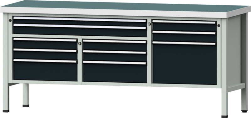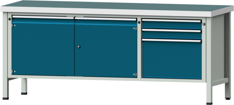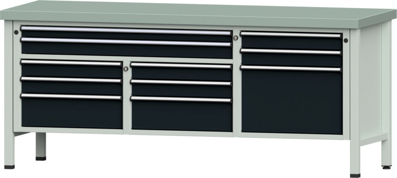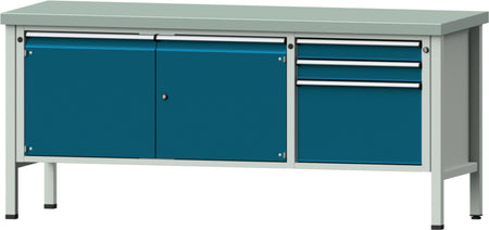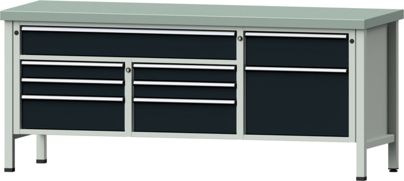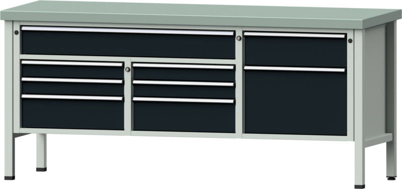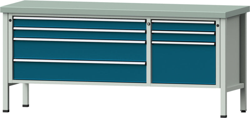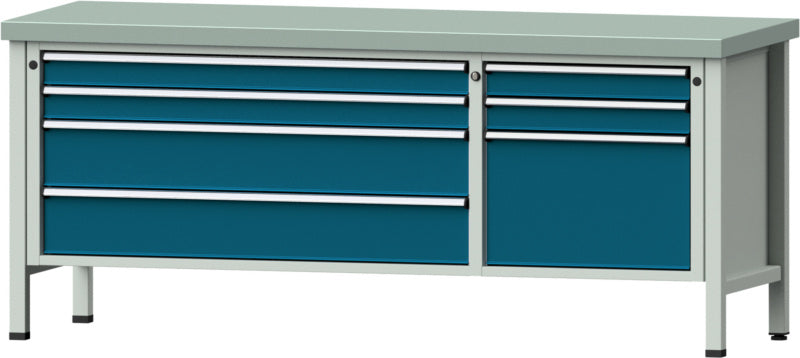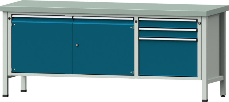Pozinkovaný plech, 2000 mm, 3 zásuvky s úplným vysunutím a 1 dvoukřídlé dveře