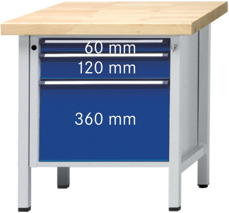 SKU: 50201315, Pracovní výška: 900 mm, Barva přední části: Enciánová modrá RAL 5010 || RAL 5010 || Enciánová modrá RAL 5010, Barva skříňky: Světle šedá RAL 7035
