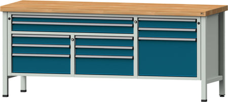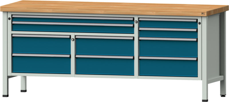 SKU: 50284800, Pracovní výška: 850 mm, Barva přední části: Enciánová modrá RAL 5010 || RAL 5010 || Enciánová modrá RAL 5010, Barva skříňky: Světle šedá RAL 7035