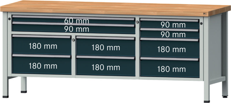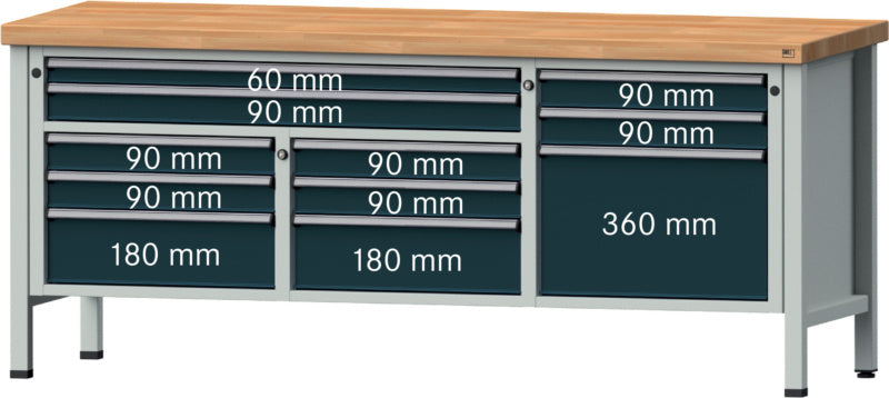SKU: 50201004, Pracovní výška: 900 mm, Barva přední části: Enciánová modrá RAL 5010 || RAL 5010 || Enciánová modrá RAL 5010, Barva skříňky: Světle šedá RAL 7035