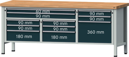 SKU: 50221440, Pracovní výška: 900 mm, Barva přední části: Antracitová šedá RAL 7016, Barva skříňky: Světle šedá RAL 7035