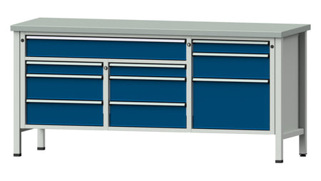 Pracovní deska potažená zinkovým plechem, 2000 mm, 10 zásuvek