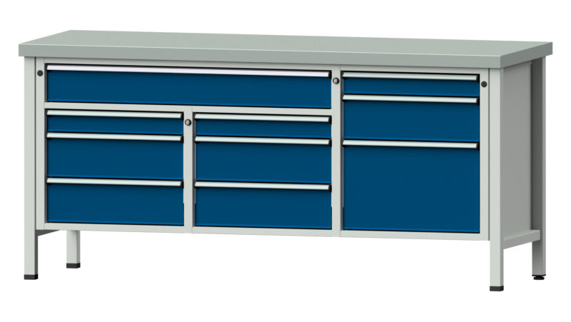 Kombinace 2 šířek zásuvek 1110 mm a 500 mm v jednom dílenském stole. Úložný prostor pro drobné i objemné předměty!