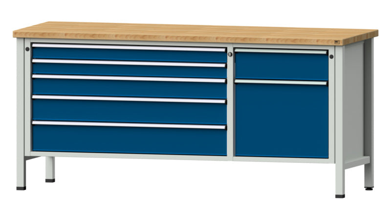 Kombinace 2 šířek zásuvek 1110 mm a 500 mm v jednom dílenském stole. Úložný prostor pro drobné i objemné předměty!