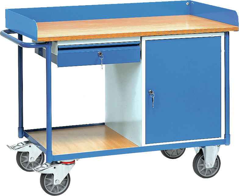 Dílenský vozík s 1 uzavřenou skříní s křídlovými dveřmi a 1 zásuvkou