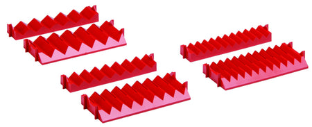 Pár hluboce drážkovaných vložek: Složeno z hlavních a doplňkových kusů. Montáž se provádí vložením mezi dvě stěny se štěrbinami. Hranice s oddělujícími deskami. Hlavní díly jsou drážkovány pro jemnější dílčí dělení nebo označování pomocí zásuvných destiček. Provedení: Z plastu ABS Barva: červená. Hlavní kus: Šířka 153 mm/9 E, hloubka 68 mm/4 E. Nástavec: Šířka 153 mm/9 E, hloubka 34 mm/2 E.