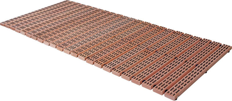 Vyrobeno z odolných drážkovaných bukových pruhů, pospojovaných ocelovým lankem