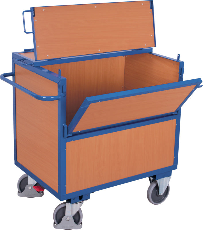 Dřevěný skříňový vozík s víkem, pevně svařovaný