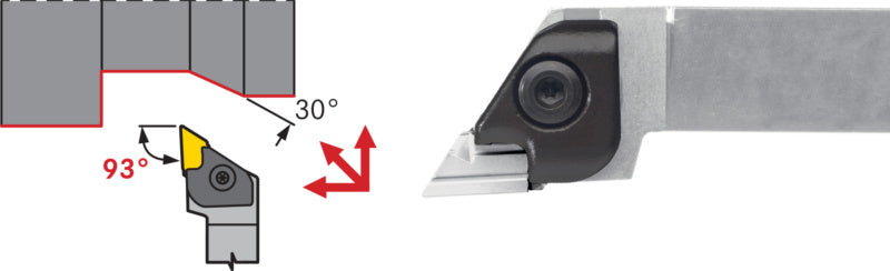 pozitivní geometrie řezání vyměnitelné břitové destičky zajišťuje nízkou sílu řezání.