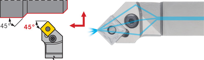 Pro kopírovací a podélné soustružení pomocí vyměnitelné břitové destičky SN 90°.