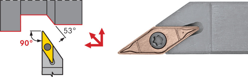 Pro podélné a kopírovací soustružení s vyměnitelnou břitovou destičkou VC 35°.