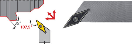 Pro kopírovací, podélné a čelní soustružení s vyměnitelnou břitovou destičkou VB, 35°.