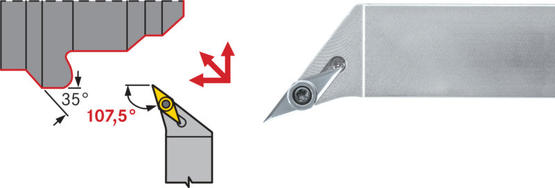 Pro kopírovací, podélné a čelní soustružení s vyměnitelnou břitovou destičkou VC, 35°.