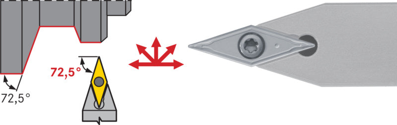 Pro kopírovací, podélné a čelní soustružení s vyměnitelnou břitovou destičkou VC, 35°.