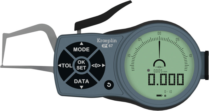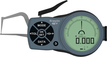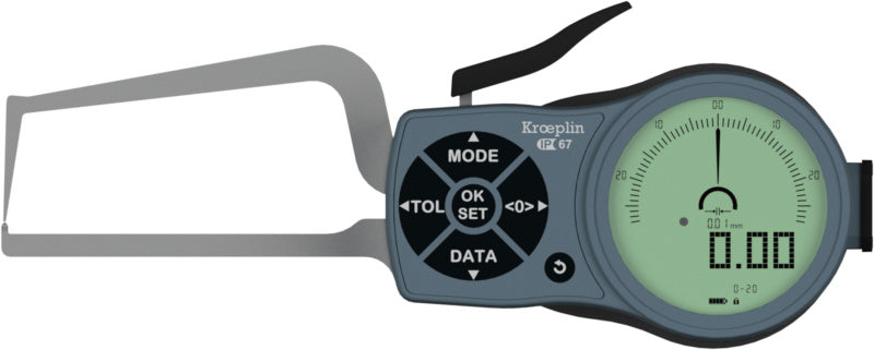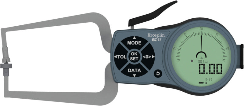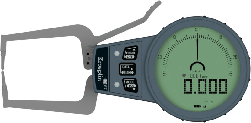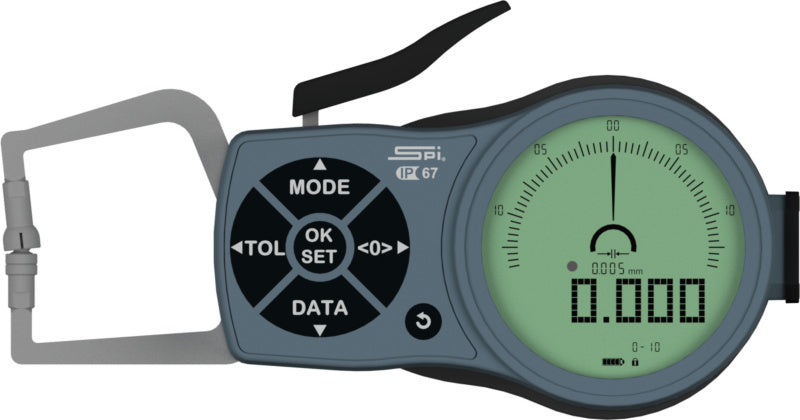 Digitální verze: Hodnotu dílku stupnice lze přepínat: 0,001 / 0,002 / 0,005 / 0,01 / 0,02 / 0,05 mm