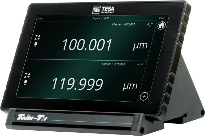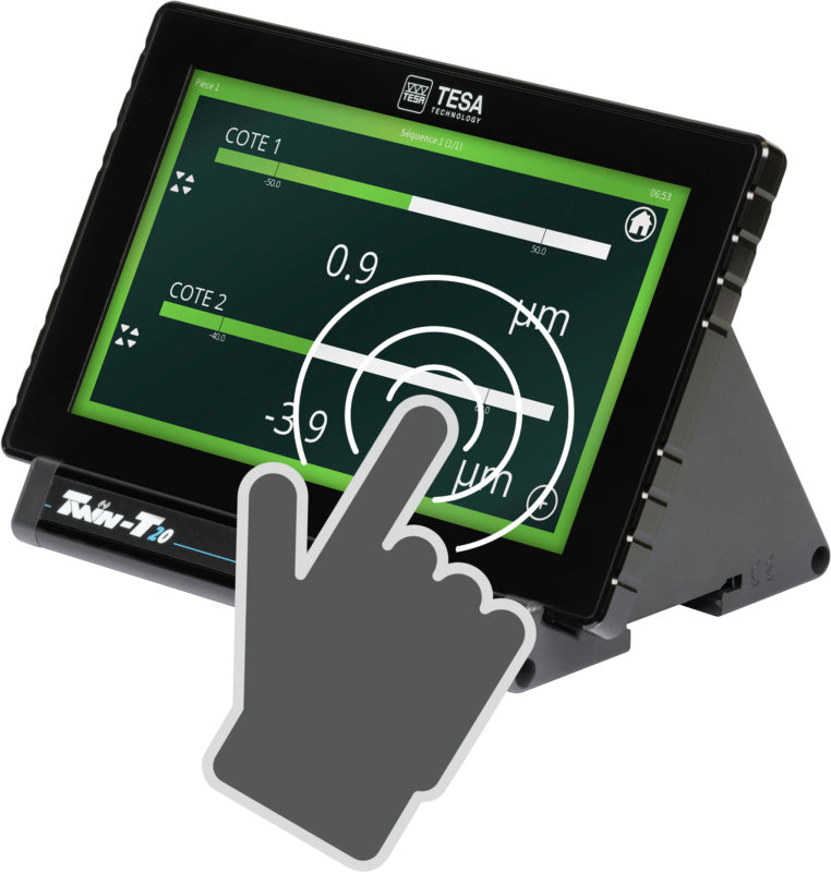 Nejmodernější jednotka dotykového displeje pro současné zobrazení několika měřených hodnot. K dispozici jsou přípojení pro indukční sondy TESA pro měření délky a připojení USB pro další měřicí přístroje. Ideální pro výrobní zařízení a měřicí místnosti.