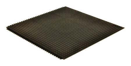 91 cm x 91 cm pryžové dlaždice pro vysoké zatížení. Snadná montáž pro pokrytí velkých ploch a vytváření jednotlivých pracovních stanic. Pracovní platforma o tloušťce 13 mm poskytuje vynikající ergonomické výhody, zatímco ergonomický povrch s výstupky zajišťuje bezpečné stání a úlevu od únavy. R9 protiskluzová odolnost podle normy DIN 51130. Elektricky disipativní pryžová ESD rohož. Vyhovuje normě IEC61340-4-1 (kategorie DIF), naměřený odpor RG 106–109 Ω, Rp 106–109 Ω