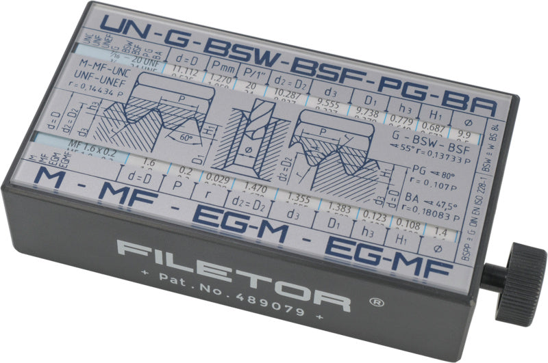 Pro přímé čtení všech standardních specifikací pro určení závitů a průměrů dutin.