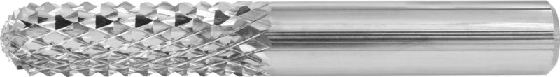 Zaoblovací fréza HSC s pyramidovými střídavými zuby a tahovým řezem. Pro obrábění materiálů CFRP/GFRP a měkkých vláknitých plastů s tendencí k ulpívání.