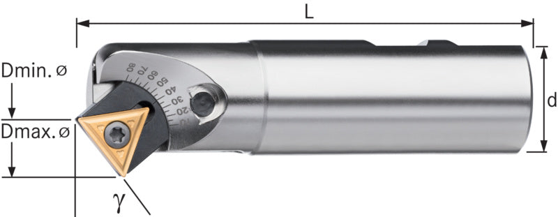 Utahovací moment pro upínací šroub (vyměnitelné břitové destičky) M2,5 = 1,2 Nm, M4 = 5,2 Nm
