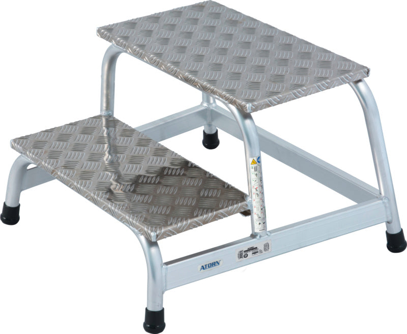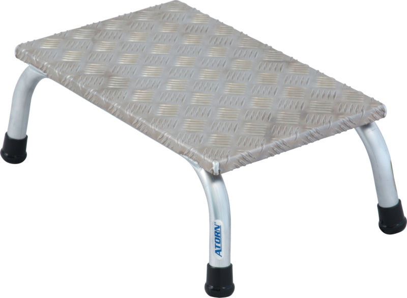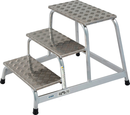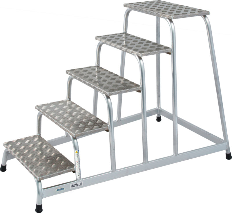 Spolehlivá a lehká hliníková podnožka pro stroje k použití v náročném průmyslovém prostředí s protiskluzovou úpravou stupňů.