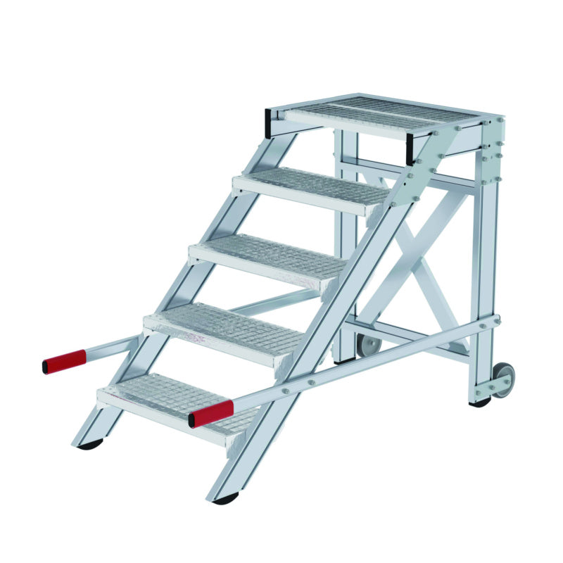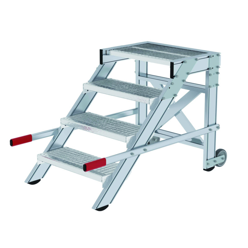 Hliníkové pracovní plošiny, pojízdné, roštové stupně, šířka 600 mm